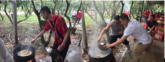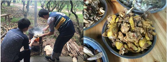不知不覺(jué)到了中午,我們轉(zhuǎn)移了陣地去野炊。小伙伴們高漲的激情仍未退去,像自家兄弟姐妹一樣分工協(xié)作。你抓雞來(lái)我宰魚(yú),你洗菜我生火,干得熱火朝天!不分彼此!個(gè)個(gè)都爭(zhēng)相當(dāng)大廚!
