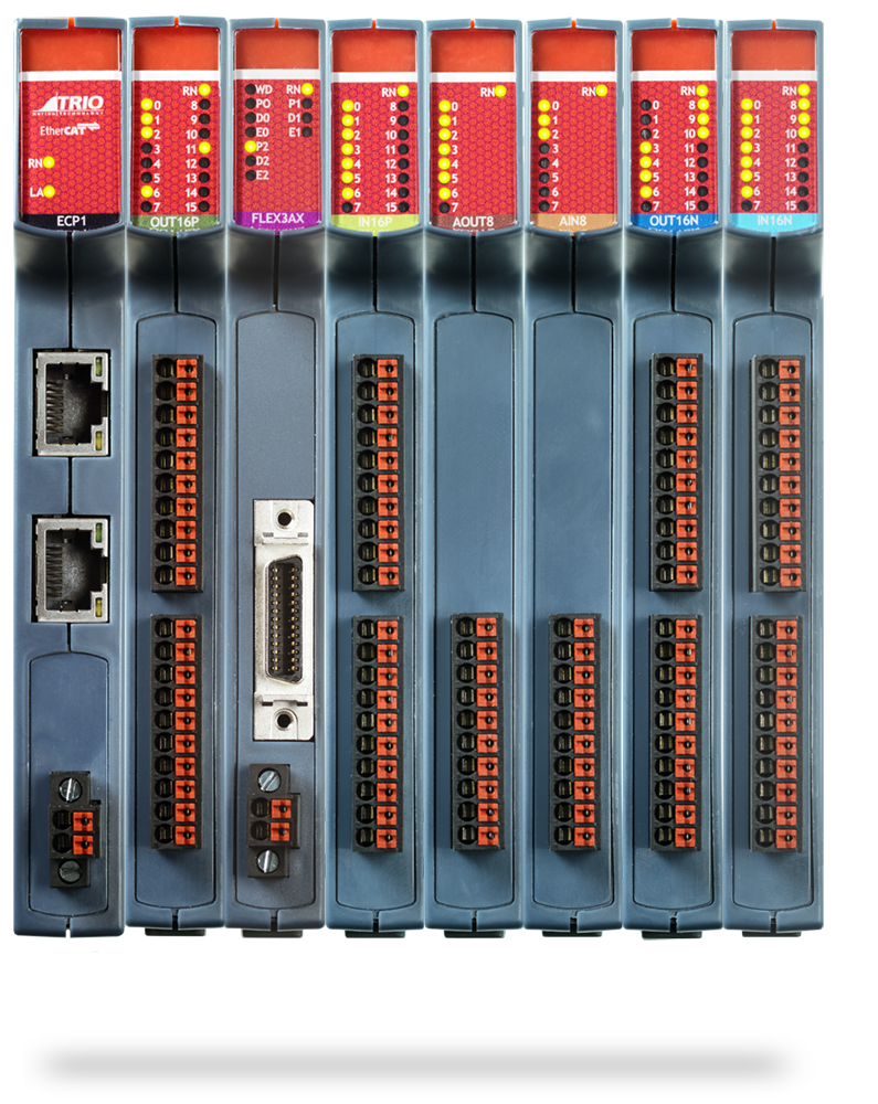 EtherCAT Flexslice系統功能更加豐富!它支持運動 控制應用快速、靈活地擴展,同時可與Trio或第三 方的EtherCAT主站搭配使用。